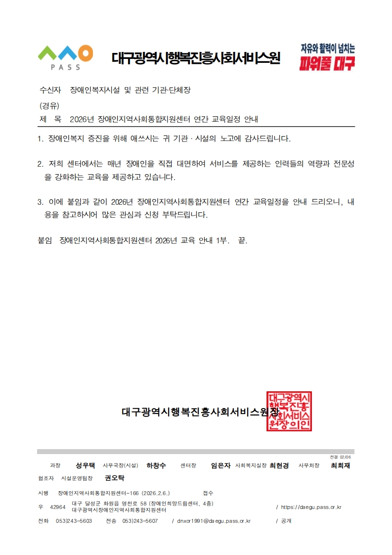 장애인지역사회통합지원센터 2026년 교육 안내드립니다.