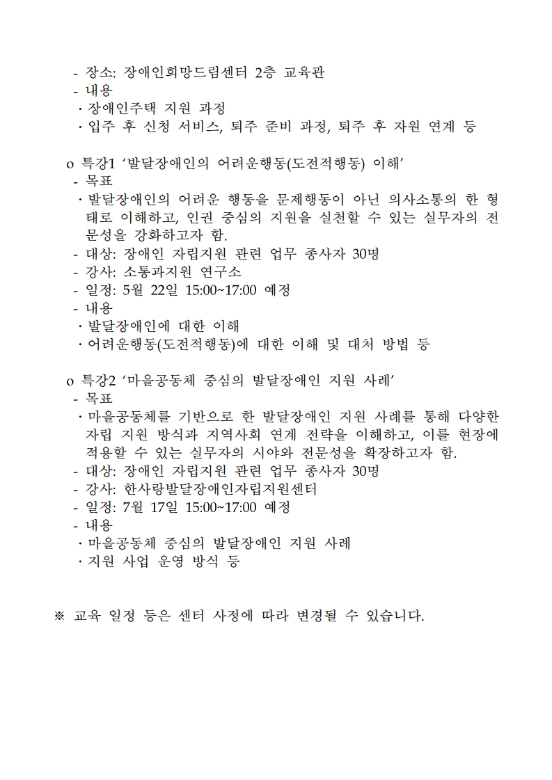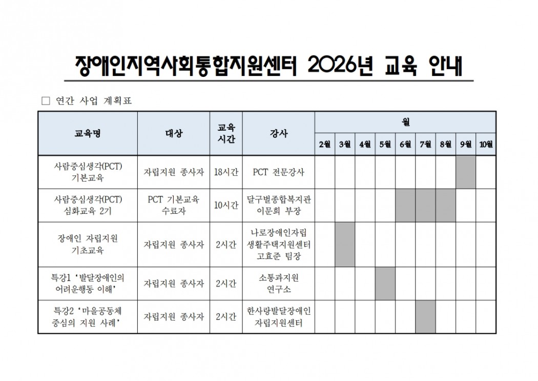 [공지] 장애인지역사회통합지원센터 2026년 교육 안내